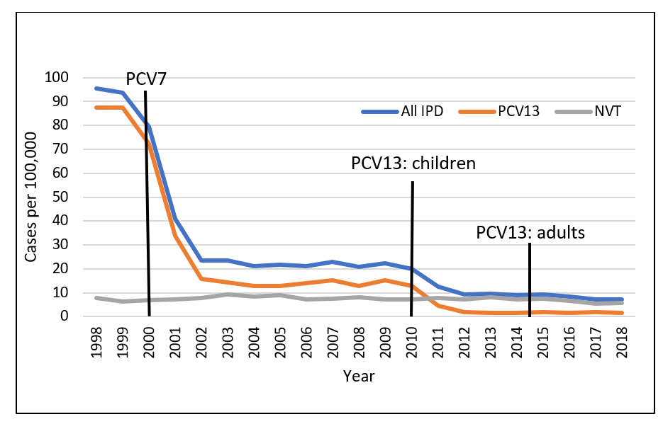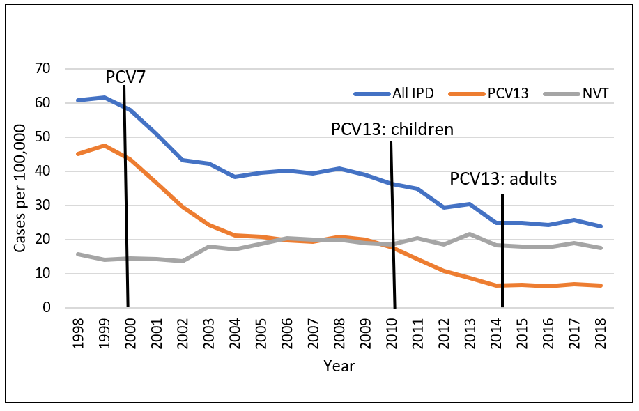 Figure 2: Incidence of invasive pneumococcal disease among adults aged ≥ 65 years, 1998-2018