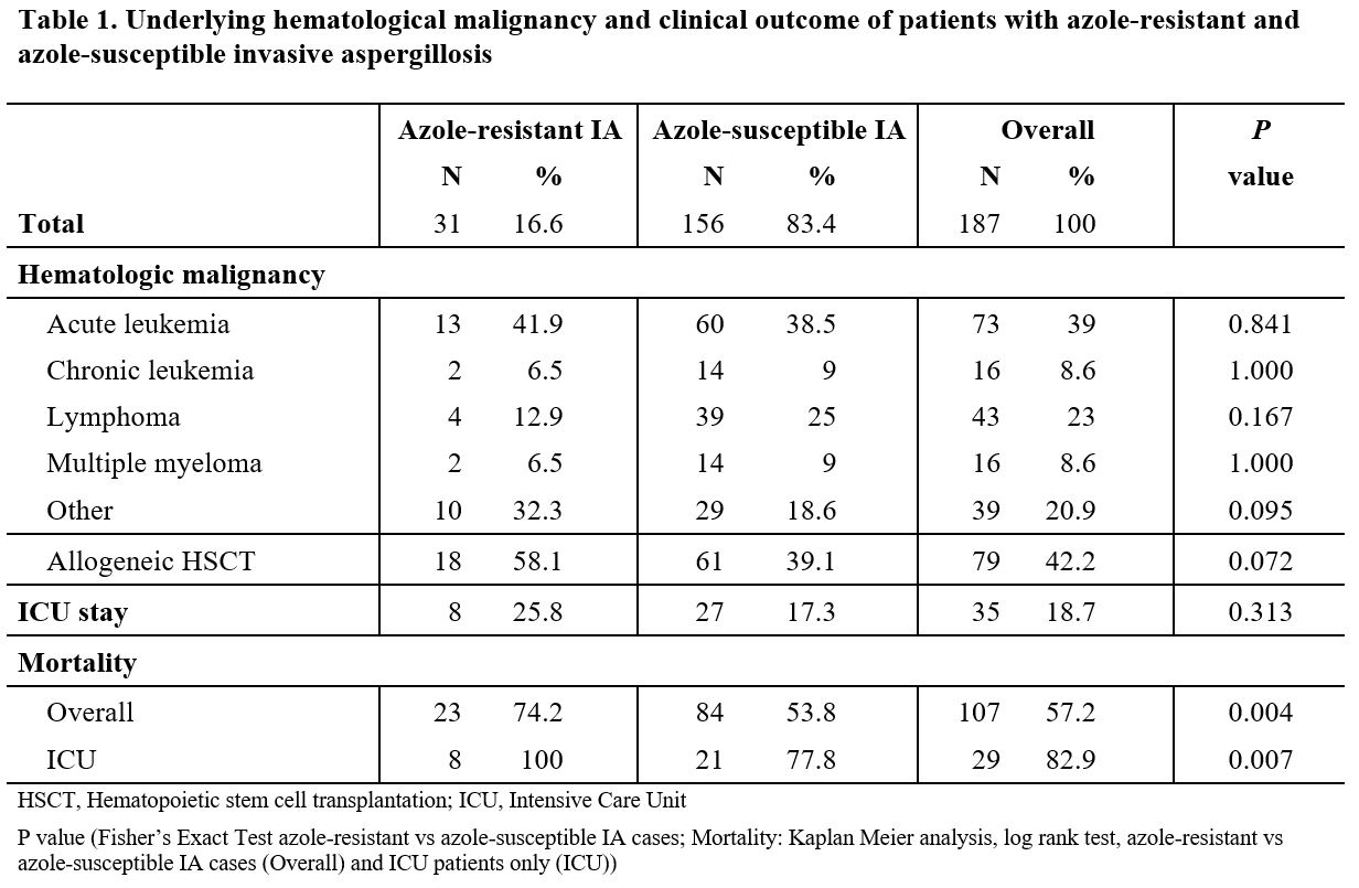 Figure 1. Intensive care unit 1-year survival probability for patients with azole-resistant and azole-susceptible invasive aspergillosis