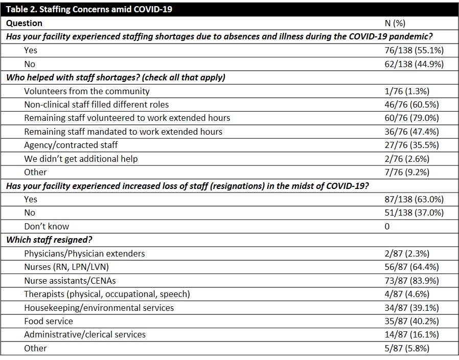 Table 2. Staffing Concerns amid COVID-19