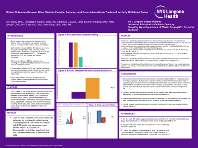 Comparative outcomes of SDF, Sedation, and GA, for children with ECC, Cory Daley, DMD, Christopher Gordon, DMD, Katherine Gouveia, DMD, Stephen Hartzog, DMD, Marc Levicoff, DMD, MS, Cody Sia, DMD