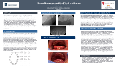Primary teeth generally begin to erupt as early as 4 months of age. In rare circumstances, neonates have teeth erupted at birth. Natal teeth have unknown etiology but exhibit significant clinical implications to the neonate and mother. This report discusses a 23-hour-old female at the Rainbow Babies and Children’s Hospital Nursey with mother’s chief complaint of feeding issues. Upon clinical exam, this neonate had four natal teeth: two mandibular central incisors and two maxillary first molars. All four teeth exhibited clinical mobility and had undeveloped root formation radiographically. The teeth were extracted due to fear of aspiration, inability to adequately feed, mother’s discomfort while feeding, and undeveloped enamel formation. The neonate’s recovery was uneventful but begs the question of why these teeth erupted in the first place and the future implications of early extraction of four primary teeth.