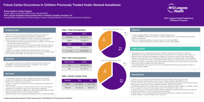 Results: Groups of patients based on demographics are approximately equal. A total of 104 (61%) patients have caries on initially untreated primary molars following initial general anesthesia experience. There is no statistical significance between age or gender in relation to future caries experience in this study.