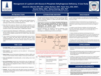Case Report: This presentation discusses a 5-year and 5-month-old African American male patient who presented to the department of Pediatric Dentistry at Howard University College of Dentistry with a medical history significant for G6PD. The aim of this presentation is to review management protocols for the safe and effective treatment of patients with G6PD.