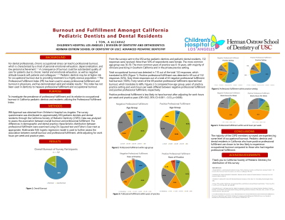 Methods: A survey was sent to approximately 650 pediatric dentists and dental residents who are members of the California Society of Pediatric Dentistry. The survey utilized the Professional Fulfillment Scale and the Overall Burnout Scale from Physician Wellness Research.