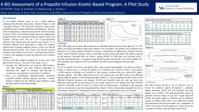 Purpose: This research will compare the scores gathered from a Bispectral Index (BIS) monitor with depth of sedation in pediatric patients undergoing a propofol infusion regimen for dental procedures. The BIS monitor provides a continuous, objective assessment via EEG analysis algorithms.