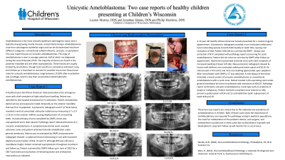 Case Report: This case report examines two patients with unicystic ameloblastomas. The first patient is a healthy 8 year old male presenting with expansion in the anterior mandible and a large expansive lesion causing displacement of multiple teeth. The second patient is a healthy 13 year old female presenting with expansion of the left posterior mandible and a large expansive lesion causing resorption of the roots of the surrounding teeth. This report will include clinical and histological findings for two cases of unicystic ameloblastoma and the treatment rendered for each patient.