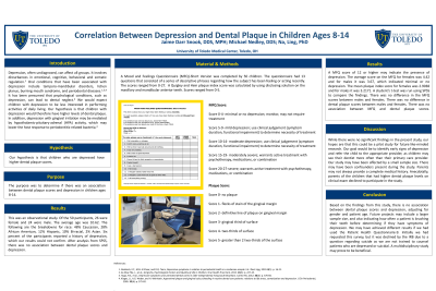Correlation Between Depression and Dental Plaque in Children Ages 8-14, Snook, JD, Nedley, MP, Na, L (University of Toledo, Toledo, Ohio)