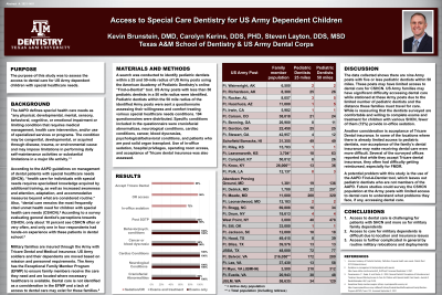 Conclusions: Access to dental care is challenging for patients with SHCN and more so for military family dependents. Access to care for military dependents is difficult due to location and insurance issues. Access is further complicated in general by routine military relocations and deployments