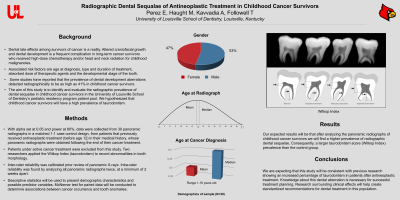 Background: The aim of this study was to identify and evaluate the radiographic prevalence of dental sequelae in childhood cancer survivors in the University of Louisville School of Dentistry’s pediatric residency program patient pool. We hypothesized that childhood cancer survivors will have a high prevalence of taurodontism.
