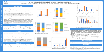 Methods: A 21-question survey was developed with questions about access to dental care and the individuals’ dental attitudes and needs, including caries, inflammation, sore mouth, misaligned teeth, difficult time chewing, bad breath, and oral cysts. After face and content validation, the Lowe Syndrome Association (LSA) parent/caregiver received the survey via email and responded regarding the oldest individual in the household with LS. At the Tufts University School of Dental Medicine (TUSDM) Department of Pediatric Dentistry, the parent/caregiver of healthy individuals completed the survey via iPad.