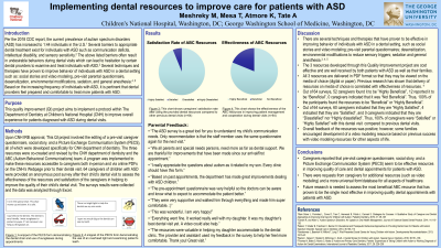 Purpose: Autism spectrum disorder (ASD) is a general term for a group of complex disorders of brain development. There are several barriers to dental treatment that exist for individuals with ASD such as social communication deficits, intellectual disability, and increased sensory sensitivity. These barriers often result in undesirable behaviors during dental appointments which can lead to hesitation by certain providers to treat individuals with ASD. Several techniques have proven to improve behavior of individuals with ASD in a dental setting.This quality improvement (QI) project aims to implement a protocol within The Department of Dentistry at Children’s National Hospital (CNH) to improve overall experience for patients diagnosed with ASD during dental visits.
