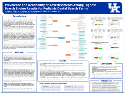 Purpose: The purpose was to evaluate the prevalence of advertisements among the highest Google search results of common search terms related to pediatric dentistry, to compare readability of advertisements to non-advertisements, and to observe readability as a function of Google search result page to determine accessibility of search engine results to the general public.