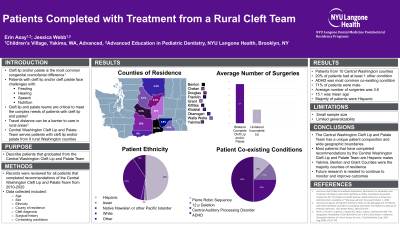 Purpose: To describe the patients who have completed treatment and follow up with the Central Washington Cleft Lip and Palate Team, which serves 9 counties in rural Washington.