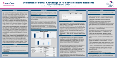 Purpose: The purpose of this study was to assess the dental knowledge of pediatric medicine residents, their application of dental knowledge of during patient care, and the effectiveness of an oral health education presentation in increasing the dental knowledge of pediatric medicine residents.