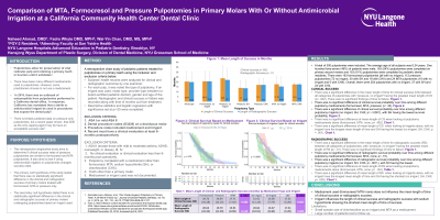 Methods: A retrospective chart review from 2016-2020 was was completed investigating the success rates of pressure, formocresol, and MTA pulpotomies at a California health center. Type of provider (pediatric dentist or resident), use of an antimicrobial irrigant (none, sodium hypochlorite, chlorhexidine), molar type (first or second) were also examined.