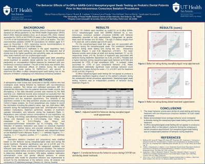 Purpose: The aim of this study was to assess the behavioral effects of children during the in-office nasopharyngeal swab test for SARS-CoV-2 and to determine the effect of in-office nasopharyngeal swab test on the behavior for dental treatment with oral conscious sedation.
