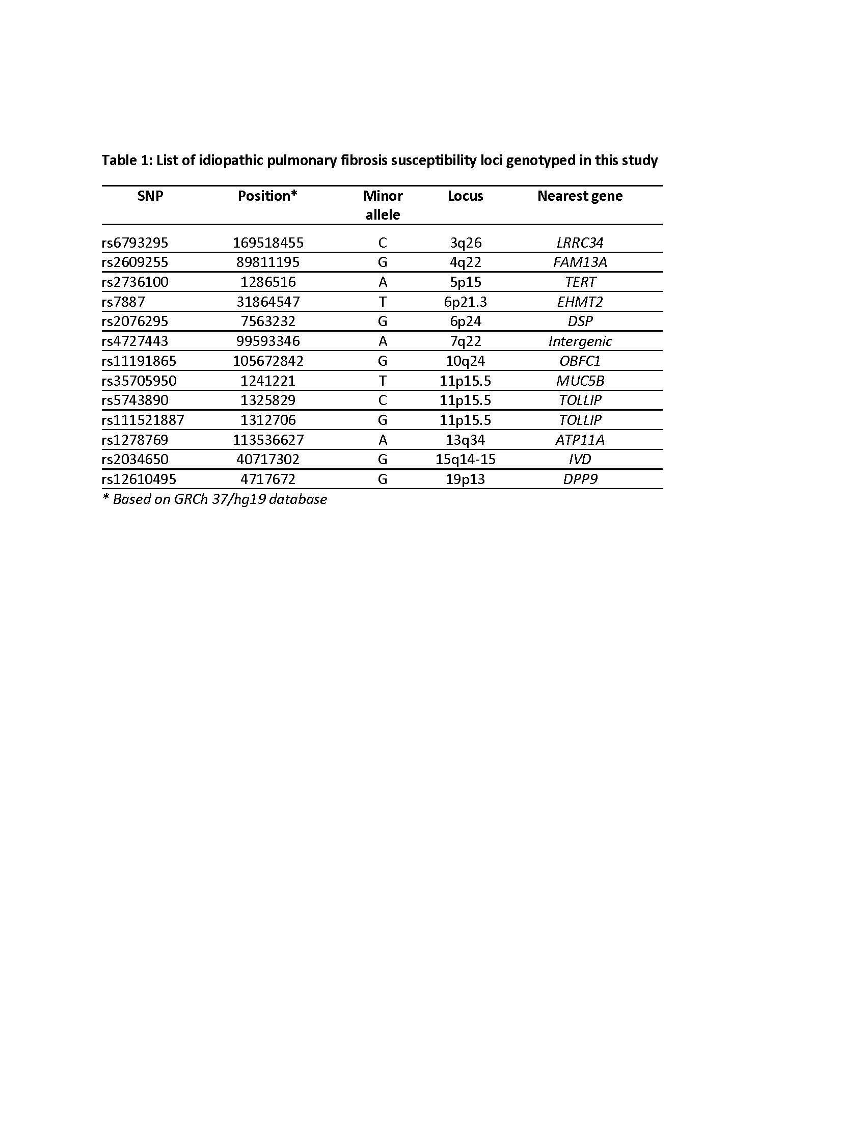 Table 1: List of idiopathic pulmonary fibrosis susceptibility loci genotyped in this study