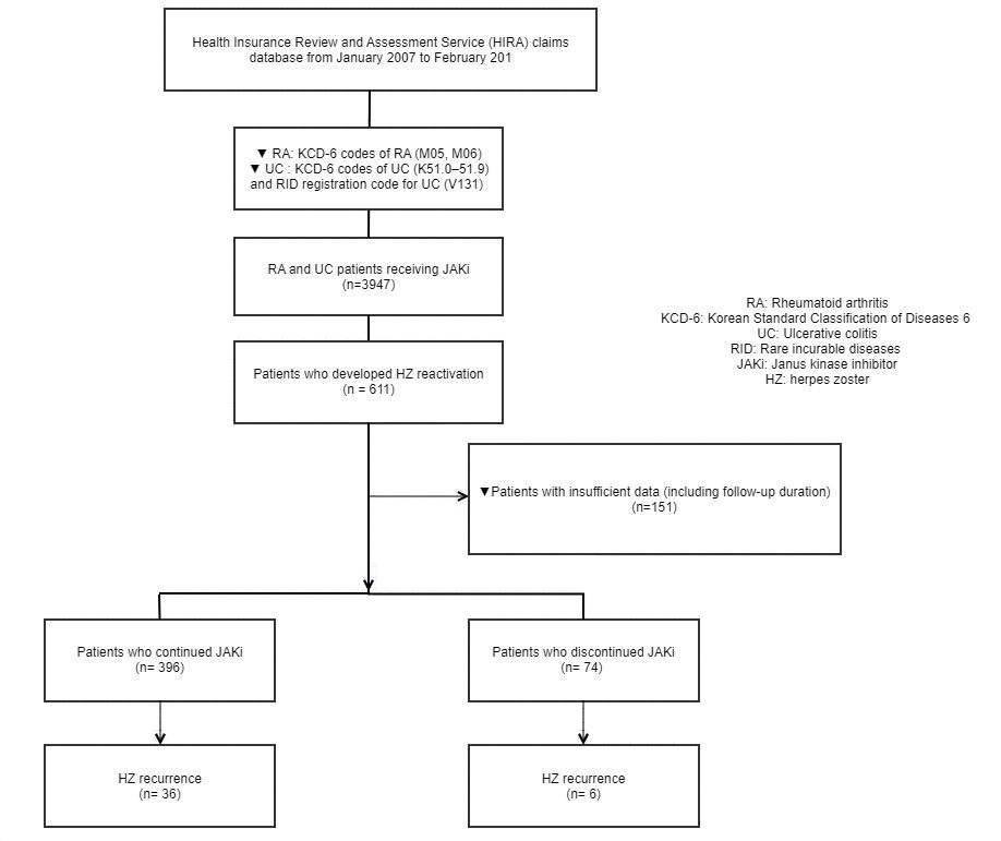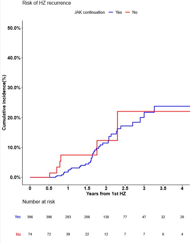 Kaplan–Meier estimate for recurrent HZ in patients with IMID; IMID, Immune-mediated inflammatory diseases; HZ, herpes zoster.