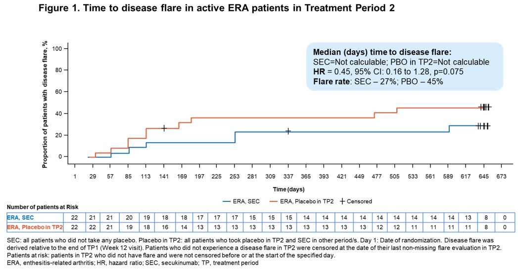 Figure 1. Time to disease flare in active ERA patients in Treatment Period 2