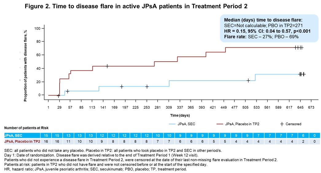 Figure 2. Time to disease flare in active JPsA patients in Treatment Period 2
