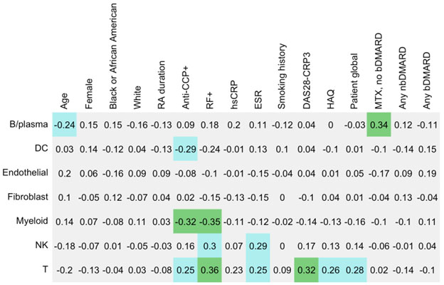 Figure 1. Correlations between cell type % with clinical factors; p-value < 0.01 in green, pā„0.01 and < 0.05 in blue..jpg)