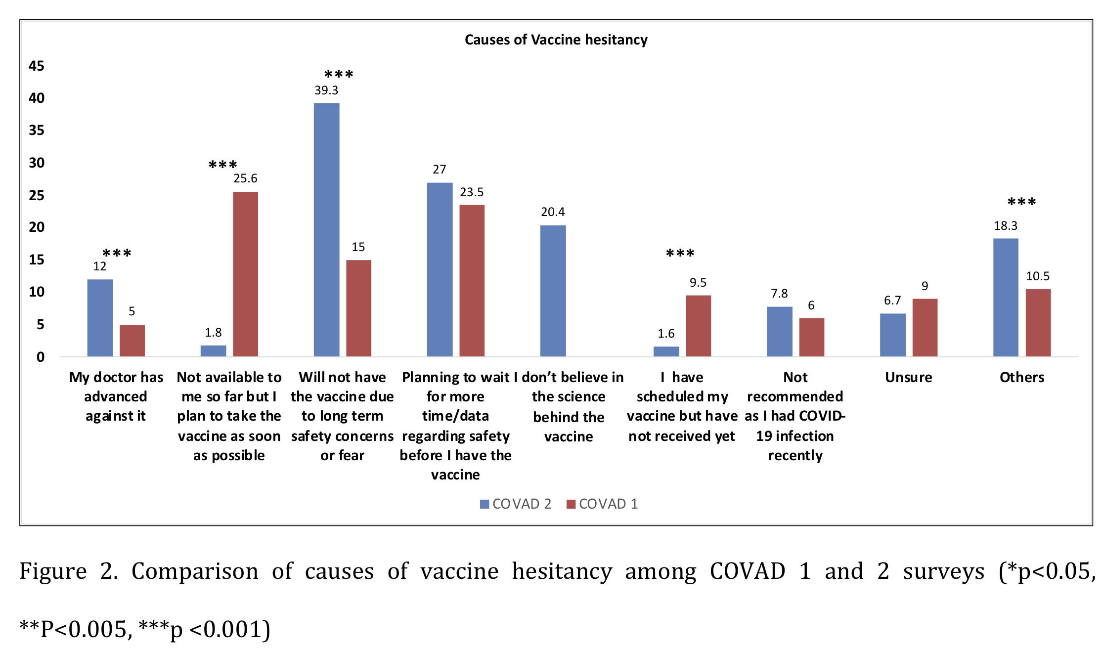 Figure 2. Comparison of causes of vaccine hesitancy among COVAD 1 and 2 surveys