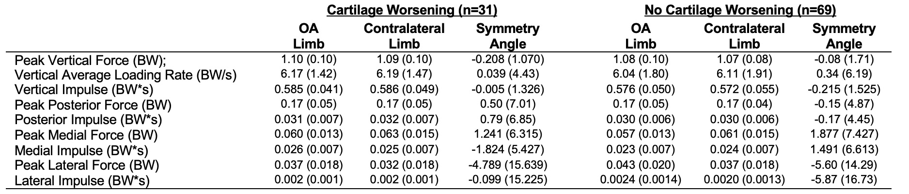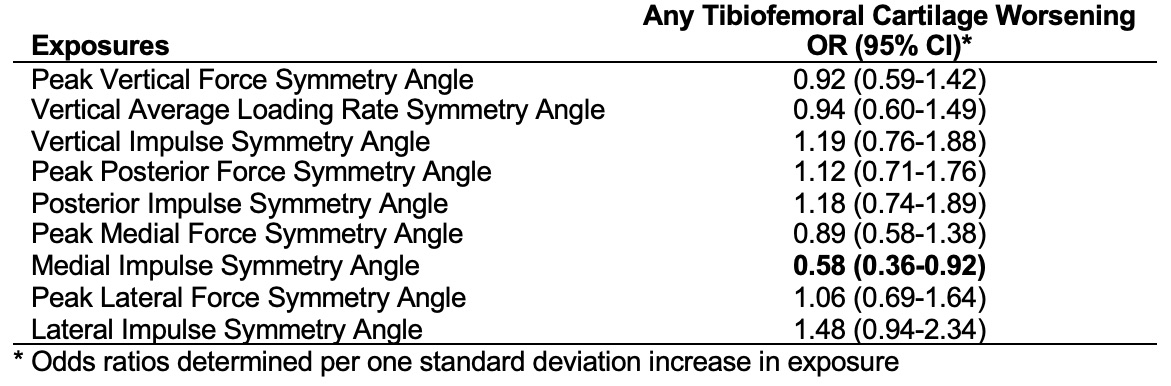 Table 2. Relation of ground reaction force symmetry metrics to cartilage worsening in the contralateral knee over 2 years in persons with unilateral knee osteoarthritis
