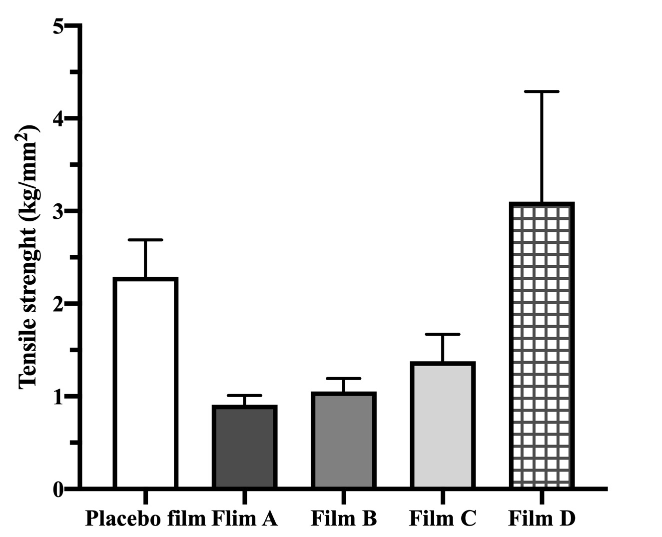 Figure 2. Tensile strength of the films freshly prepared (Day 1).