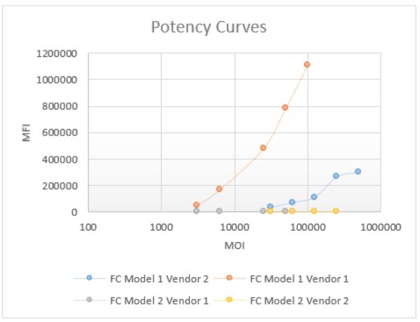 Comparison of Potency Curves Read on Different Instrument using Different Vendors of AAVs