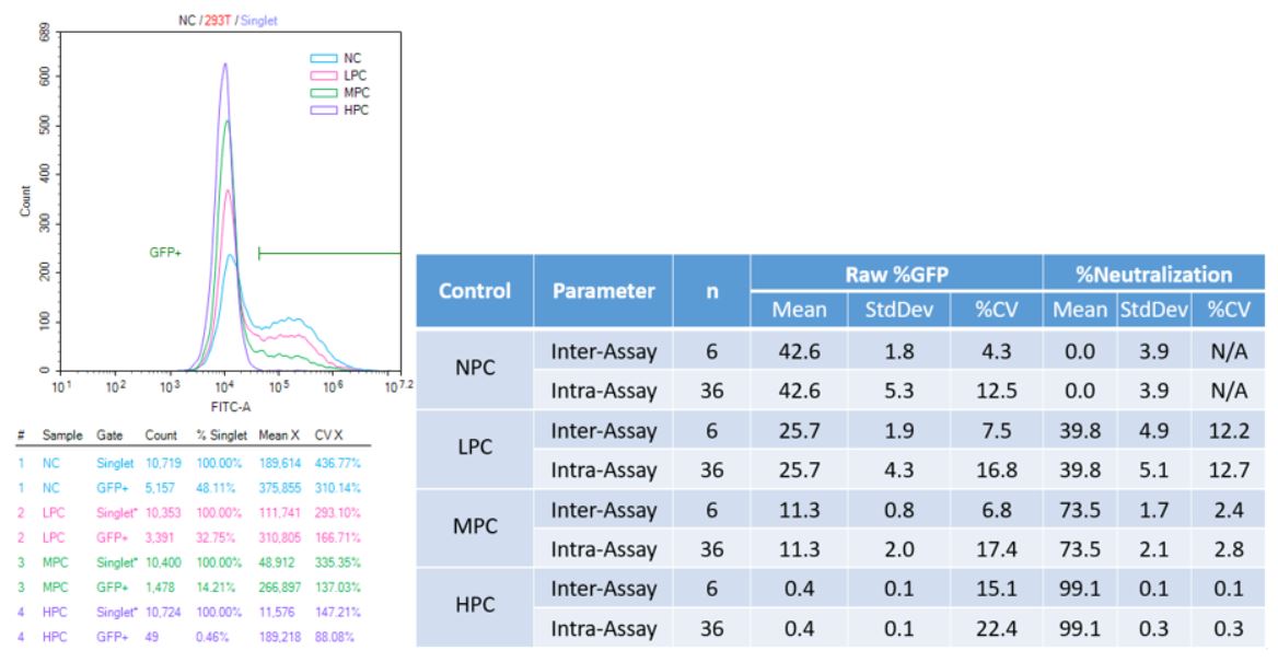 Figure 3 Validation Precision a) Representative overlay plots and statistics of controls b) Precision Result Summary Table