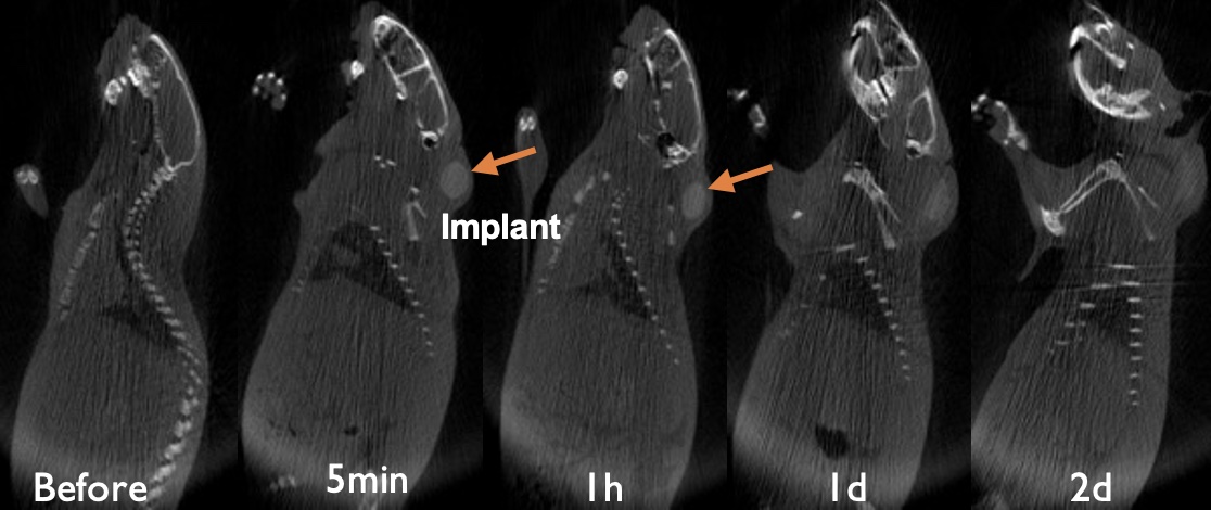 Figure 1.B CT images of implants at various time post implantation (Iohexol and leuprolide acetate_no cavity was observed)