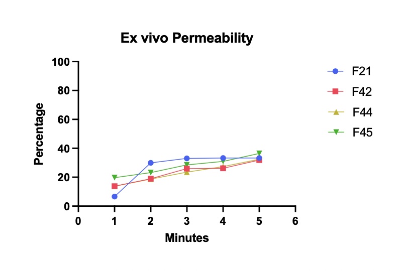 Figure 1. Ex vivo permeability study showing percent of drug completely permeated through the pork buccal membrane at one-minute intervals.