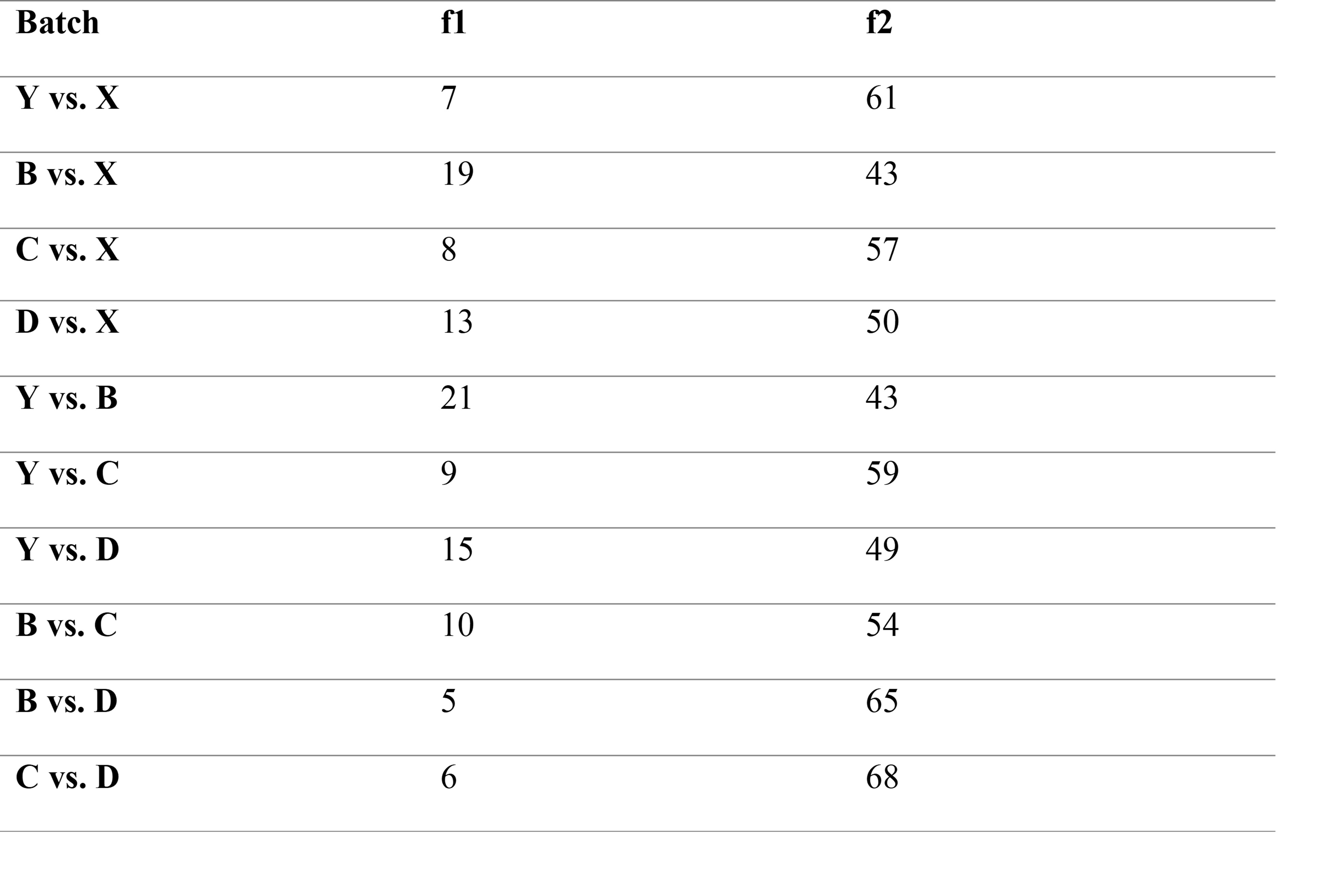 Table 1: Difference factor (f1) and similarity factor (f2) comparisons. Values that fall within the standard range (f1: 0-15 and f2: 50-100) generally ensure sameness of the compared curves.