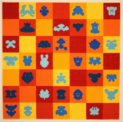 As a nod to @Inktober, I spent the month of October 2020 making daily ink blots. These ink blots went on to become the templates for the appliqué shapes on this quilt. I really enjoyed the needle turn appliqué process, but the highlight of making this quilt came when the Instagram comments came rolling in! As I posted each finished block, people shared what they saw in these shapes. It was enlightening to see the variety of things that different people saw in the same shape! They became such a focal point of the making of this quilt, that I felt compelled to quilt them right into it. In fact, that guy in the upper right corner of the quilt became its namesake. What do you see? A miserable ghost or a piece of disappointed toast? See the comments at #inkblotquilt to read all the different interpretations of each shape.