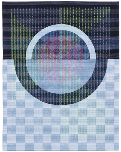 Flattering the strengths of each artist, the quilt circulated through the group for design, pattern drafting, hand dyeing the fabric palette, piecing, quilting, embroidery, and finishing; each maker laying their artistic mark on the finished piece. This collaboration, from the beginning, allowed each artist to add their touch to the design as the quilt changed hands over a seven month period. The final finishing was done by the pattern drafter, bringing the quilt, full circle.