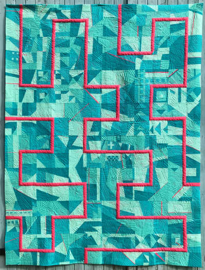 The Golden Bobbins are a recently formed group, united by a love of Modern Quilting. Our quilt 'The Journey' is our first and marks the beginning of our own journey together as a group. It was inspired by the Exquisite Corpse series of quilts by Abigail Vargas.