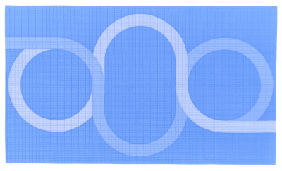 This quilt is part of an ongoing series of work that explores movement and energy. Inspired to make a minimalist version of the series’ signature swirl motifs, I chose a muted, monotone palette of cool blues. Metallic thread adds a sparkly, ethereal quality to the piece.