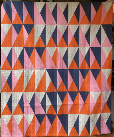 This is one of three quilts I produced for a 2022 exhibition called 'The Before Times' at the Wangaratta Art Gallery in Victoria, Australia, which was curated by Tara Glastonbury (@stitchandyarn). Each quilt uses a limited palette – with each pair of quilts sharing at least three colours – and a single shape. Avalanche uses only triangles – in the form of quarter-rectangle triangles (QRTs) and half-rectangle triangles (HRTs). It is based on a quilt design that I created in September 2019 (#166 in my series of Sunday sketches).