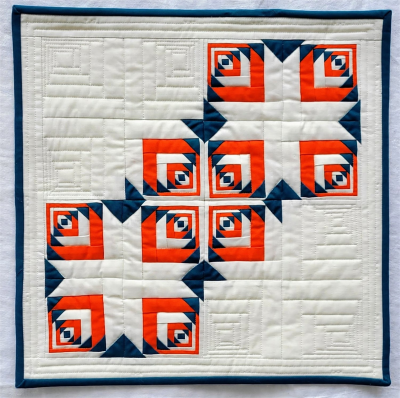 The more the merrier at the little bitty block party! Circle up with your friends and look for the patterns in life that emerge when we gather together. Three inch modified log cabin blocks are arranged to create symmetrical patterns. Ghost blocks join the grouping to continue the story that the piecing is telling.