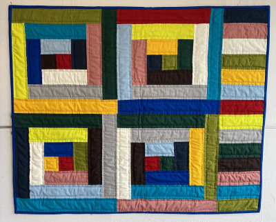 I made this quilt because my Mom is making a quilt for the log cabin challenge. Last year, my brother entered QuiltCon and I wanted to join in. My Mom and I went to the quilt store and I picked out these colors - my favorite is Acid Lime! I asked my Mom to hand-quilt it because she hand-quilted her entry.