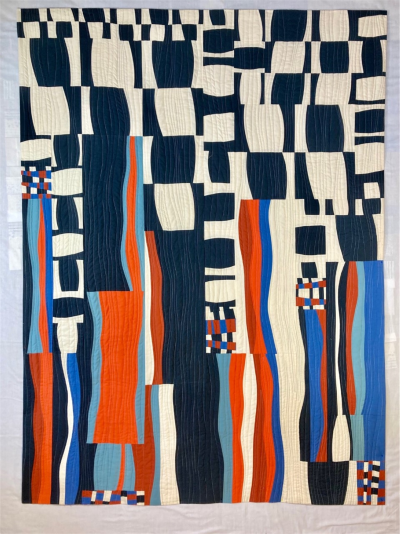 This Improv Quilt was made using all six of the specially chosen solids from the Windham Fabrics, Ruby and Bee line. When I read that Ruby and Bee are the names of two little girls, I started to think happy things like hopscotch, bike riding and giggles. So I went on a trip down memory lane to my own childhood and remembered toasting marshmallows on a backyard fireplace with neighborhood friends. I really liked the black, burnt marshmallows and the challenge it was to get the just right amount of burn and to keep just the right twist on the stick to keep the marshmallow from dropping into the coals in one big melty mess. It wasn't always successful ! Well, that was all the inspiration I needed for this fabric challenge. Good memories and a joy to make!