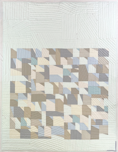 I often use the quilting process to reflect on thoughts and memories that are uncomfortable and recontextualize them in a literally softer way. While healing trauma with a therapist, I used this quilt as a soothing tool, thinking about wrapping it around my younger self to comfort her. When there was a gap in the quilting that felt significant, I filled it with a bolder thread that represents the painful work of healing, holding myself together, and moving on.