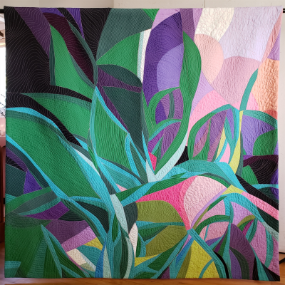 Improvisational piecing, made entirely of upcycled materials (including batting). Inspired by the nature and the colors of Mexico.