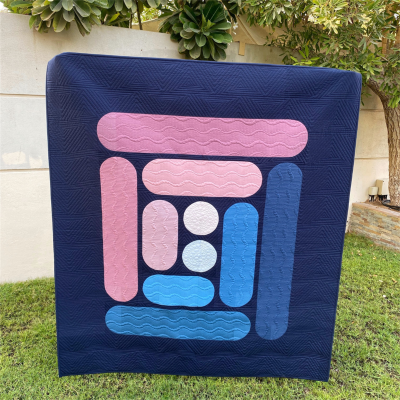 I dream of quilt designs! And the inspiration for this quilt came after I used the skinny drunkard path templates by Jenny Haynes of @pappersaxsten. So while sitting in a cafe, I put pencil to paper and the quilt came to life. The key for the original design was to ensure that as the shapes increased in size, the saturation of the colour increased as well. So as each log grew larger, so too did the depth of blue and pink. Once the fabrics were chosen, the quilt top came together so quickly. My friend Monika did the quilting. Before she started we spent hours choosing the designs for each feature of the quilt; the background, the featured dots in the centre, and then the logs. It was a lot of fun to collaborate with her on the details. The name of the quilt is simply from my family tree.