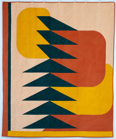 Old Pine was inspired by the pine trees in the Pacific Northwest. This design shows different shades of light filtering through the pine tree. Old Pine was made using Art Gallery Fabrics Pure Solids and was quilted by So Sunny Quilts.