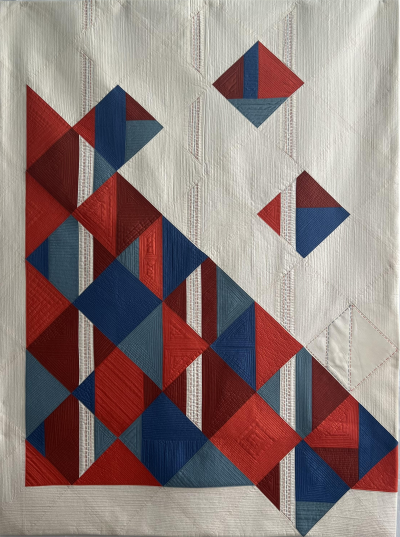Looking over the edge, sliding down a steep slope, a country divided, no place for those that are different, seen as less than or not being seen at all: these are the ideas represented in this quilt. Are we at a Tipping Point? Political extremism, the climate crisis, book bans, claims of election fraud, insurrection at our nation's capital, gun violence, the restriction of women's reproductive rights and the reduction of rights for disenfranchised and marginalized people. Music from "The Tipping Point" the 2021 album from the British band, Tears for Fears, was my inspiration.