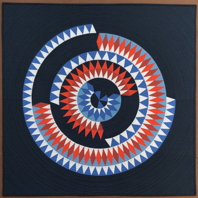 Inspired by Becky Goldsmith's Bullseye Quilt and Audrey Esarey's Radial Quilt Series. The use of Russet and Mandarin fabrics reminds me of fire, hence the name "Burnt-Out". Concentric circular quilting completes the Bullseye.
