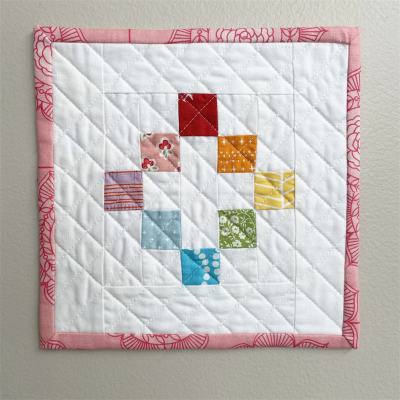 My name is Sarah Brickey and I am 12 years old. Rainbow Mini is my first quilt that I ever made. I was inspired by an unnamed mini quilt that Yvonne Fuchs gave my mom.