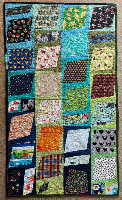 I made this quilt with my mom. I had the most fun picking out the fabric. I got to quilt it on my mom's longarm. My mom helped me cut it out and bind it. I did pretty much the rest.