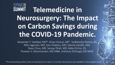 Conclusion : Telehealth is an effective tool in reducing overall carbon emissions. Additional investigation into the use of telehealth in neurosurgical clinics is warranted.